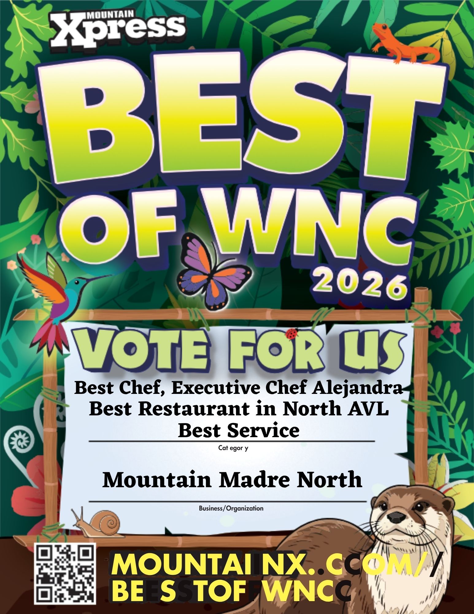 Owners/Creators, Danny & Paige Scully, Executive Chef/Partner Alejandra Vidal Tenorio, and GM/Events Director Jasmine Clark created Mountain Madre's North location with the intention to bring families and friends together. Our Mountain Madre team is committed to providing our guests the best quality food & drinks, vibrant atmosphere, and a memorable experience!